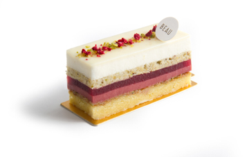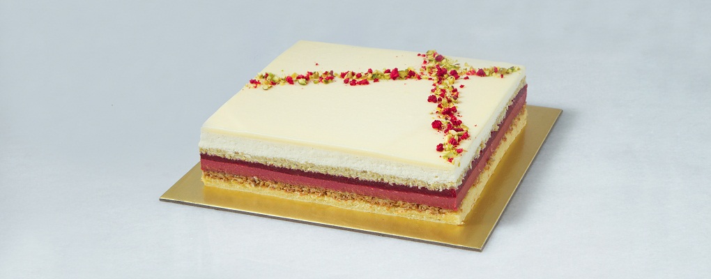 Our signature cake of raspberry, pistachio, white chocolate and yoghurt. Enlivened with popping candy and freeze dried raspberries, this cake is fun and full of surprises.